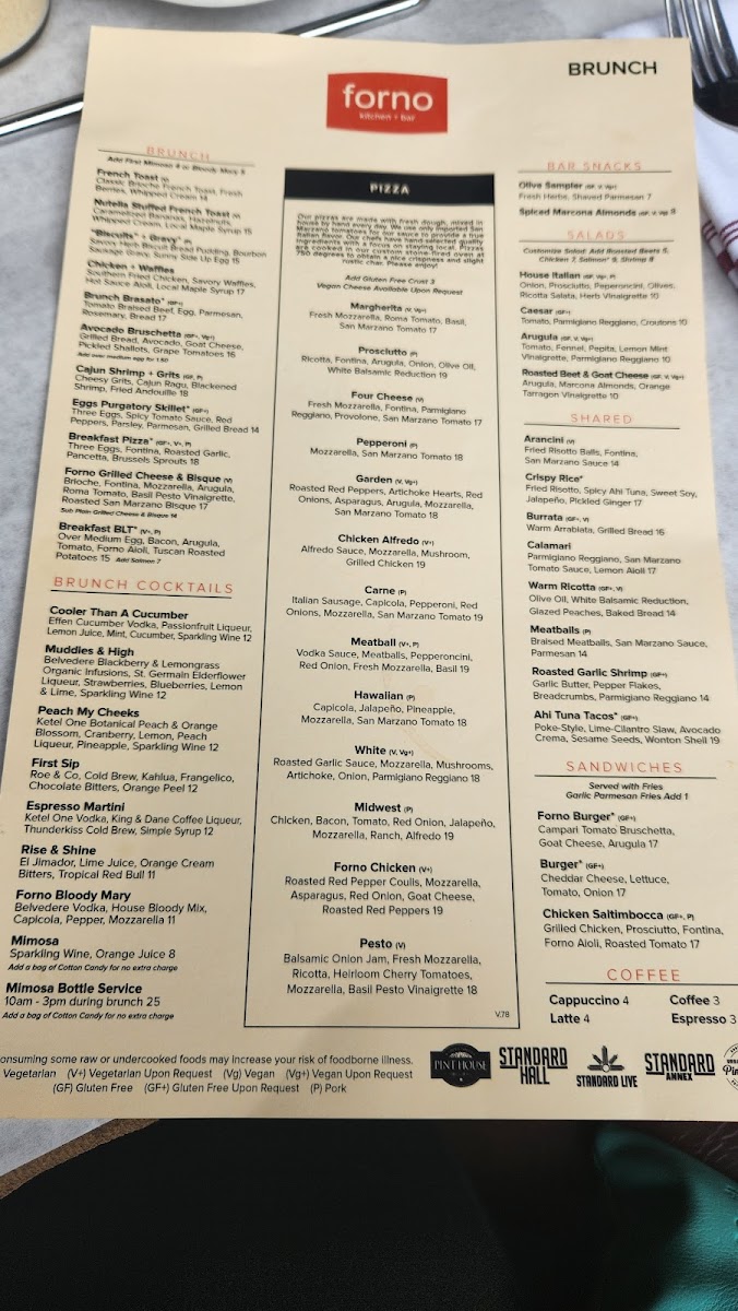 I had a great experience at Forno in Columbus! The pizza was absolutely delicious—perfectly cooked with great flavor. The drink I ordered was just as impressive, refreshing and well-balanced. What really stood out, though, was the outstanding service. The staff was friendly, attentive, and made the whole experience even better. I’ll definitely be coming back!